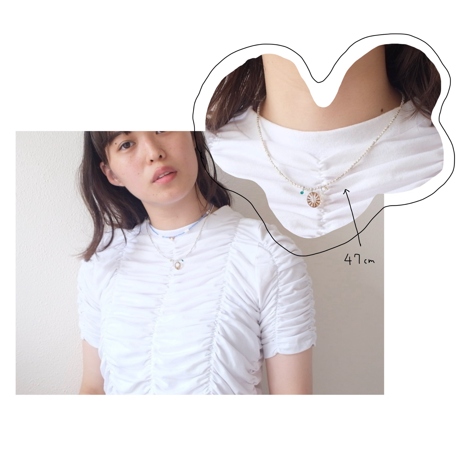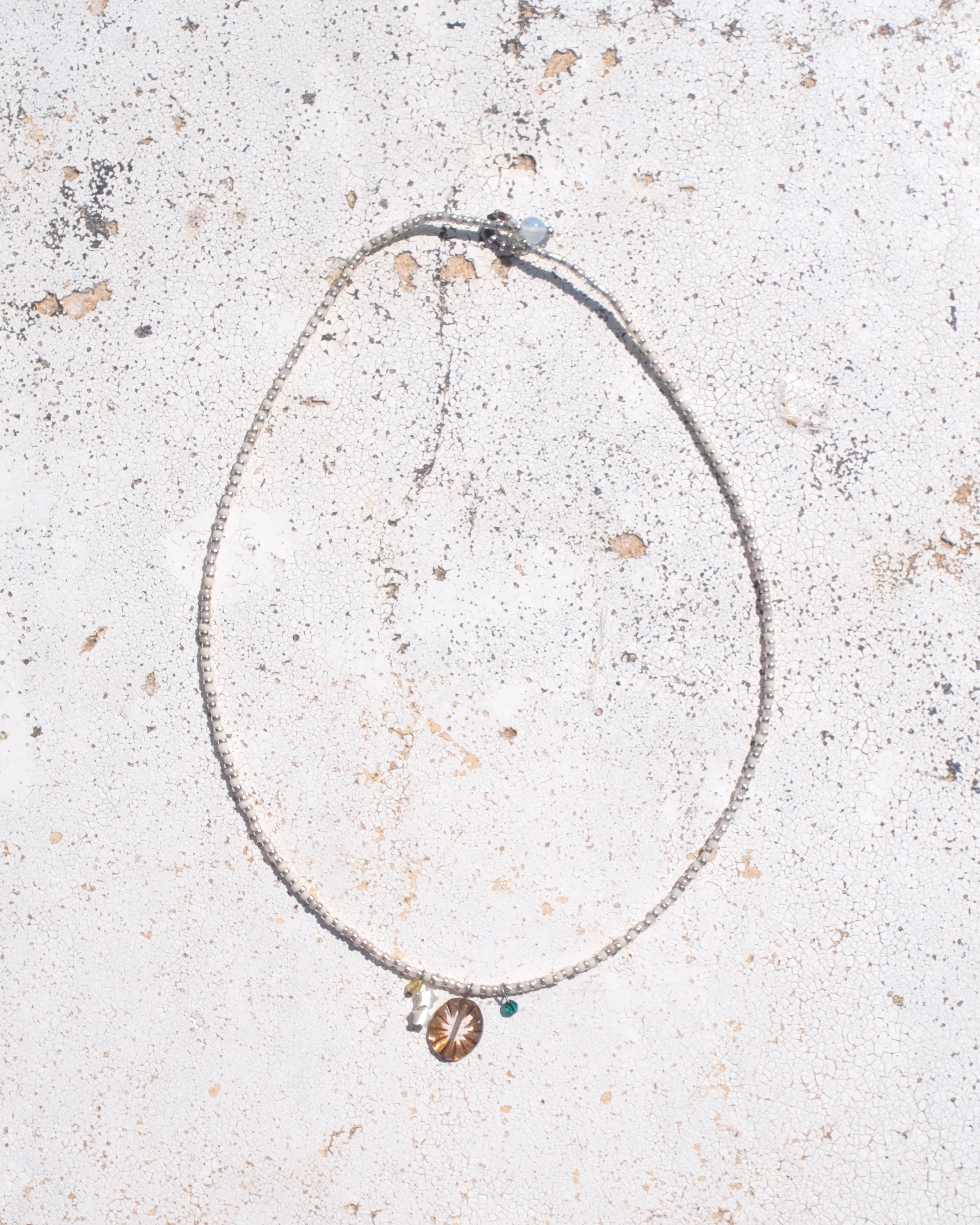 素材:ガラスビーズ/メタルビーズ(真鍮ベース・メッキ仕上げ)/ナイロンコーティングワイヤー